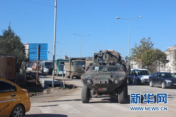這是12月24日在土耳其基利斯省拍攝的軍事車(chē)輛。? 新華社/伊赫拉斯新聞社