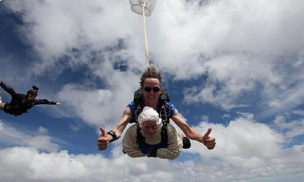 12月9日,澳大利亞蘭霍恩溪,102歲的老奶奶奧謝玩高空跳傘,給運動神經(jīng)元疾病研究籌措資金。這種病2008年奪去了她女兒的生命。