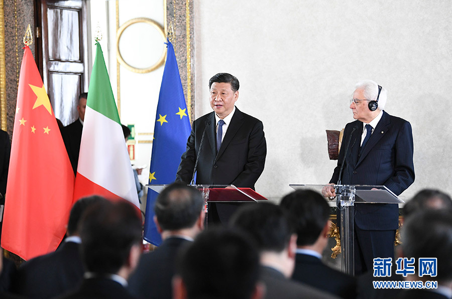 3月22日,國家主席習(xí)近平在羅馬同意大利總統(tǒng)馬塔雷拉舉行會談。(新華社記者謝環(huán)馳攝)
