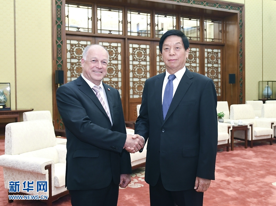 6月10日,全國人大常委會委員長栗戰(zhàn)書在北京會見以奧地利聯(lián)邦議會議長英戈·阿佩為團長的奧中友協(xié)高級代表團。 新華社記者 燕雁 攝