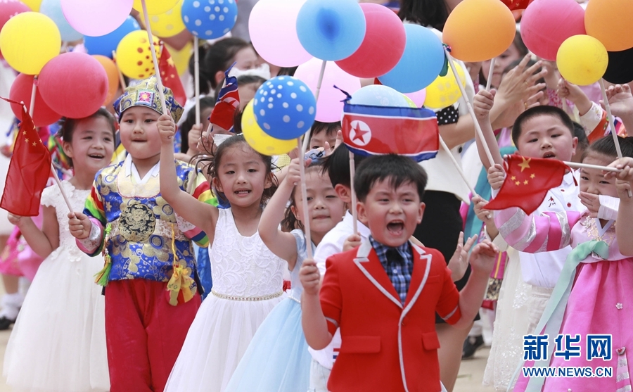 6月20日,中共中央總書(shū)記、國(guó)家主席習(xí)近平乘專(zhuān)機(jī)抵達(dá)平壤,開(kāi)始對(duì)朝鮮民主主義人民共和國(guó)進(jìn)行國(guó)事訪問(wèn)。這是朝鮮兒童在平壤順安機(jī)場(chǎng)熱烈歡迎習(xí)近平。新華社記者 龐興雷 攝