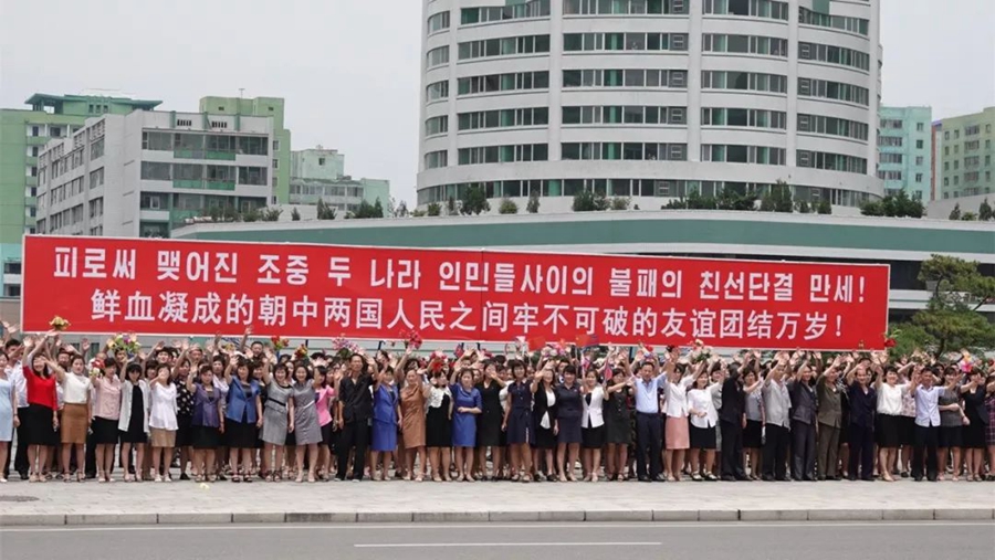 沿路數十萬朝鮮群眾高呼“朝中友好”“歡迎歡迎”!
