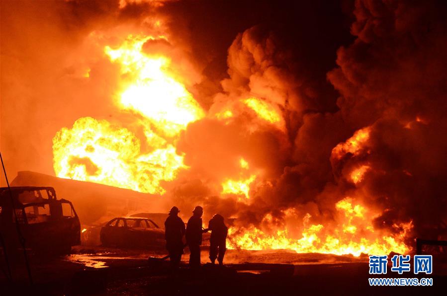 這是7月4日在尼日利亞拉各斯拍攝的輸油管道爆炸起火事故現場。新華社/尼通社
