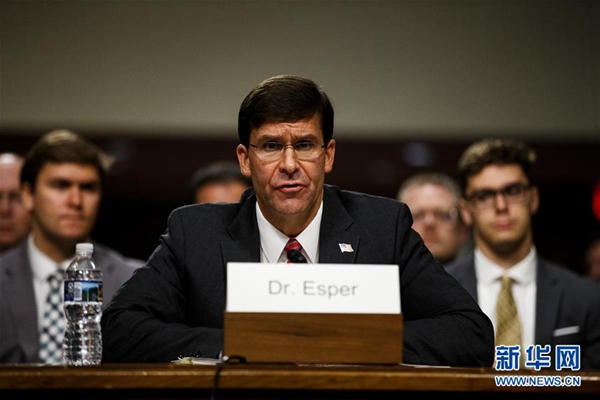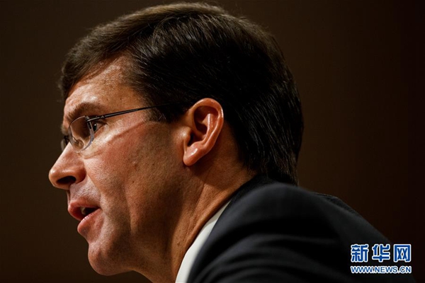這是7月16日在美國華盛頓國會拍攝的馬克·埃斯珀參加參議院聽證會的資料照片。新華社發(沈霆 攝)