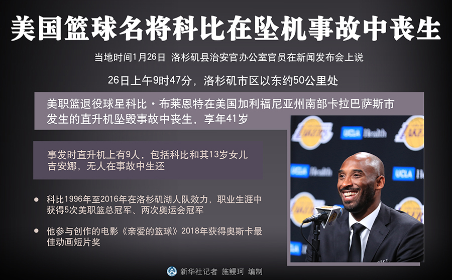 圖表:美國籃球名將科比在墜機(jī)事故中喪生 新華社記者 施鰻珂 編制。