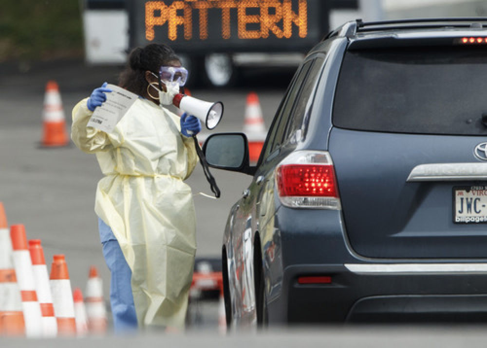 3月19日,在美國弗吉尼亞州阿靈頓,醫(yī)護(hù)人員在一處“免下車”新冠肺炎檢測點引導(dǎo)車輛。新華社發(fā)(沈霆攝)