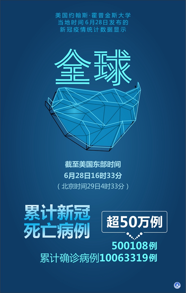 海報(bào):美國約翰斯·霍普金斯大學(xué):全球新冠死亡病例超過50萬例 新華社記者 曲振東 編制